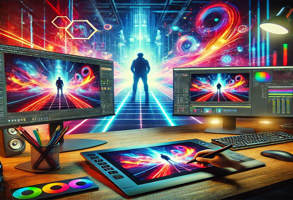 Motion graphics combine graphic design, animation, and visual effects to create engaging content for videos, advertisements, games, and more.